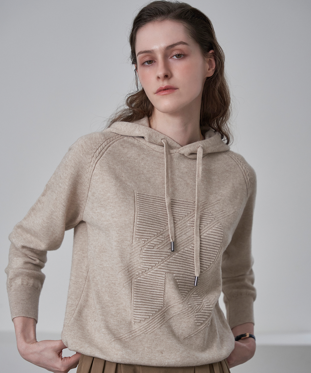 캐주얼 자수 후드 니트 ML12KN734FJY