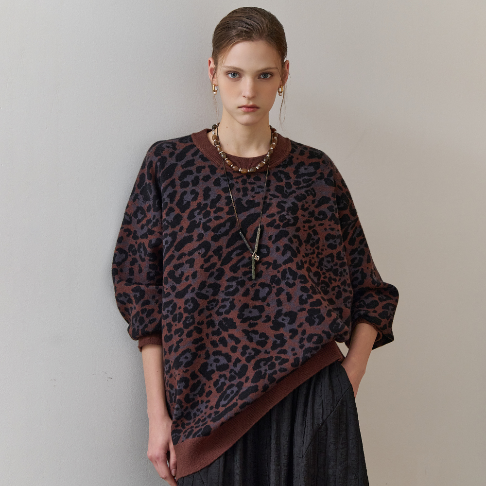[엠그라프] 레오파드 패턴 루즈핏 라운드넥 니트