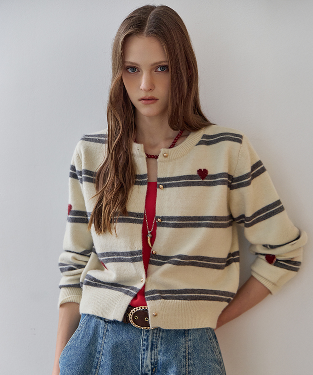 [마쟈] 하트 스트라이프 펄 니트 가디건