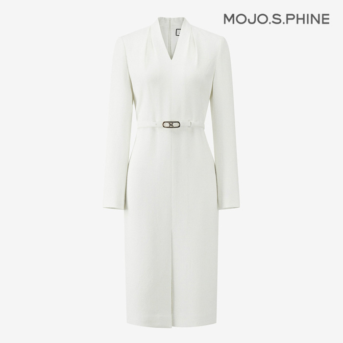 [모조에스핀] V넥 벨티드 H라인 원피스 CR_S254MSE018
