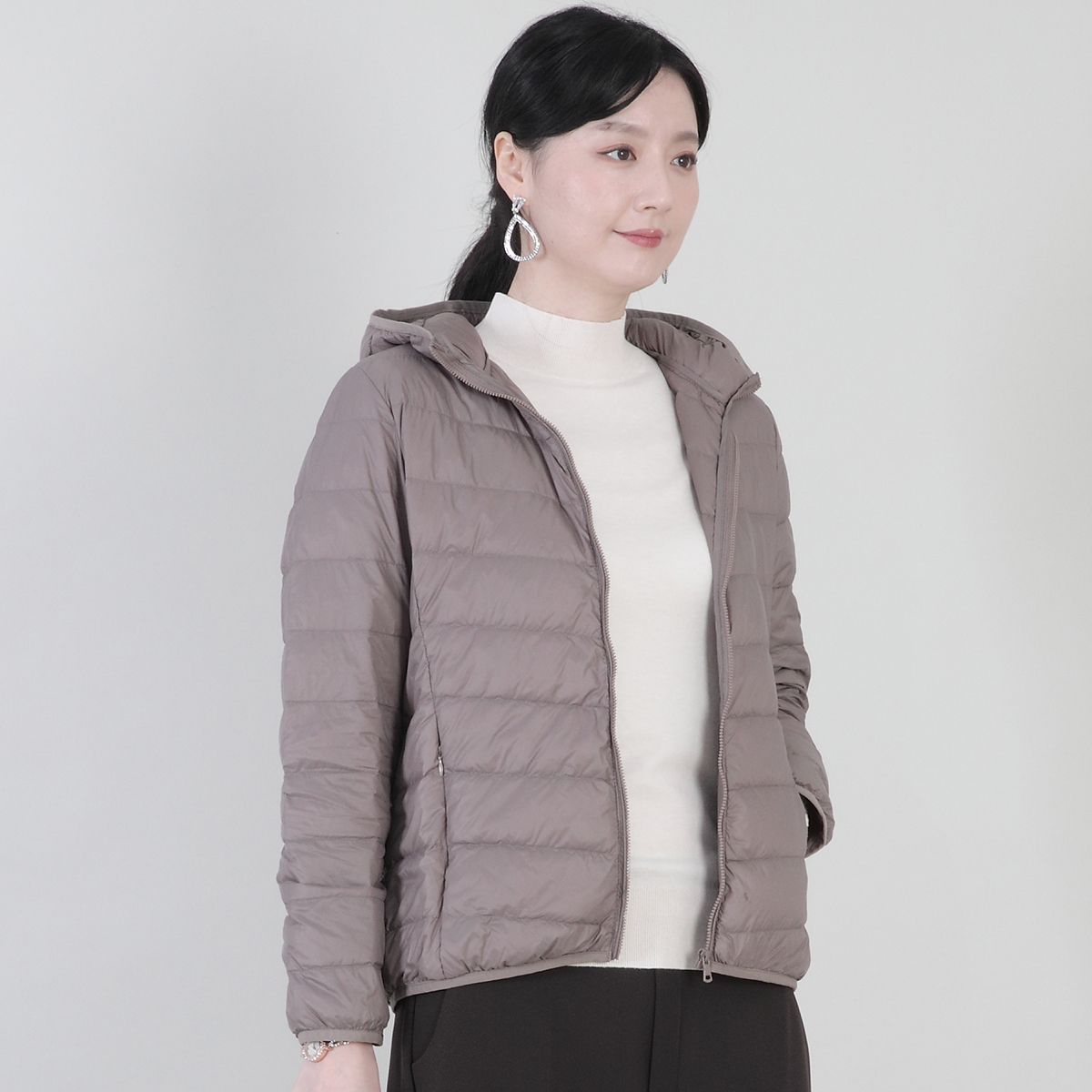데일리 후드 경량 오리털 지퍼 주머니 여성 봄 가을 초겨울 긴팔 숏 패딩 점퍼 J11514