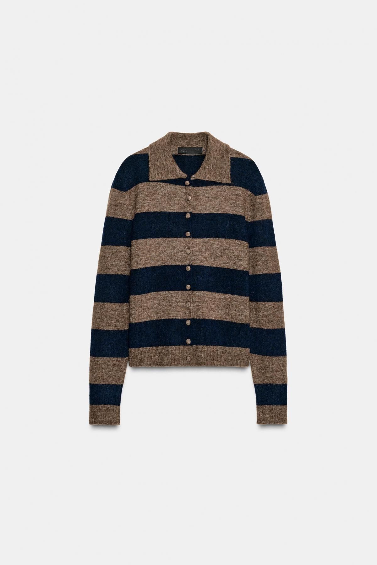 자라 스트라이프 클래식 가디건 3653/113/049 BROWN-BLUE