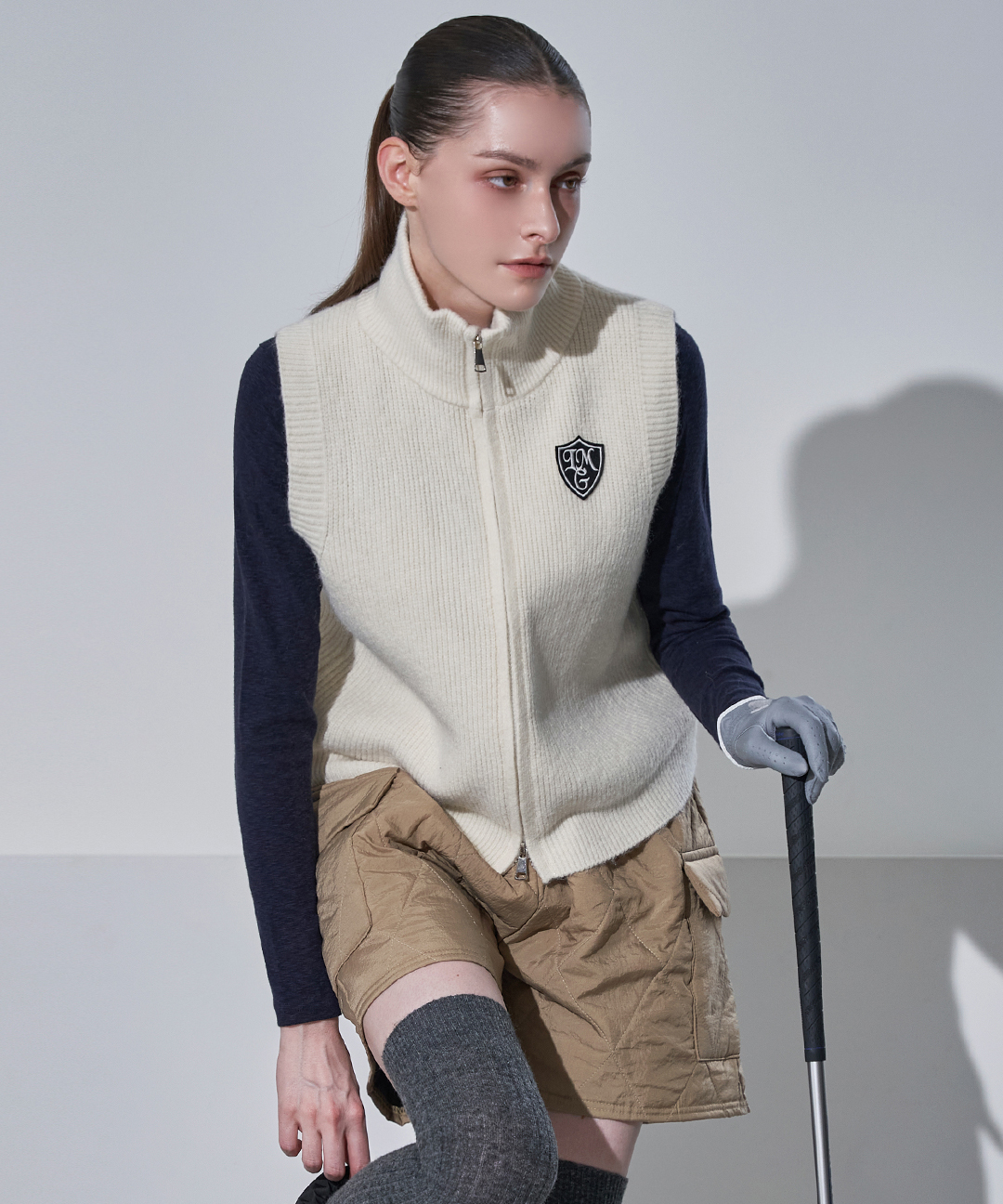 르니 와펜 하이넥 집업 니트 조끼 FN02KV701WL