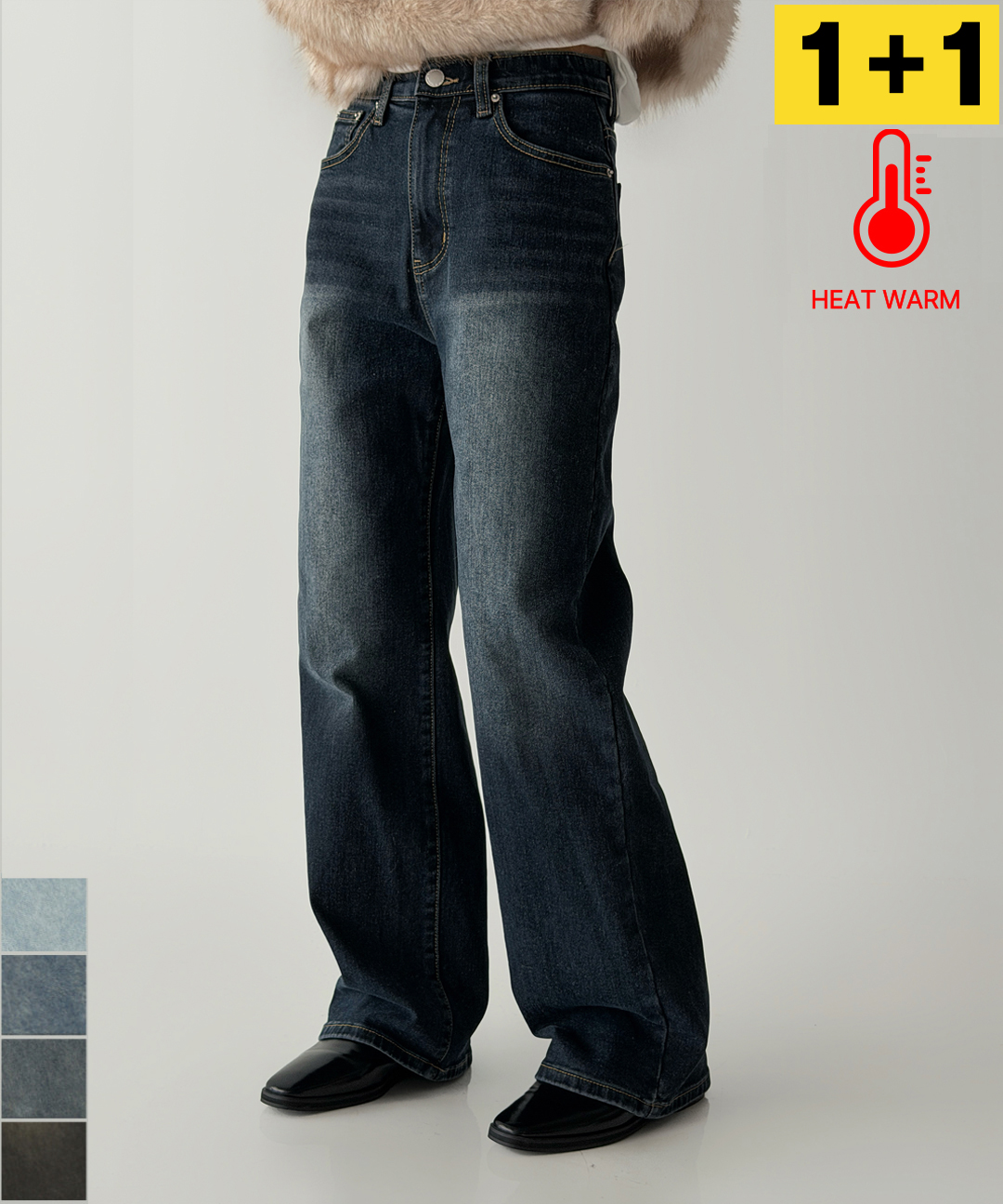 [1+1특가 51,200원] [기모🔥/후기인증/S~2XL] 스테디 와이드 데님 기모팬츠 4color 겨울 바지 스판 3단기장 클리어런스 세일