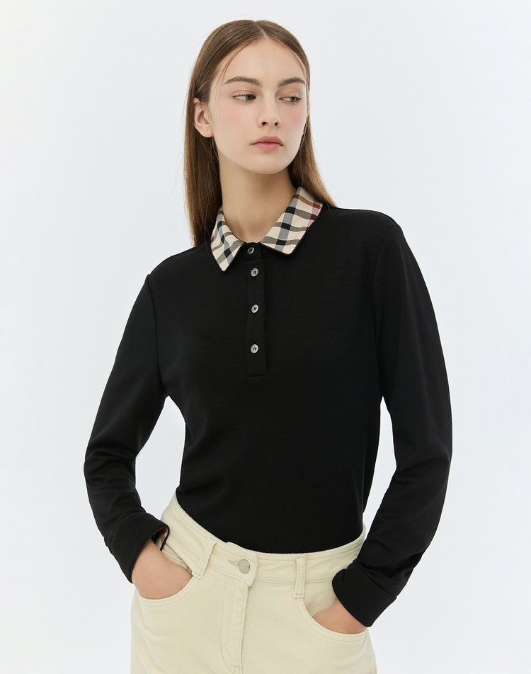 [닥스 여성]블랙 로고자수 울혼방 긴소매 카라티셔츠_WKTS4D901BK