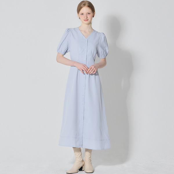 [오조크] 웨이스트 턱 디테일 퍼프 원피스