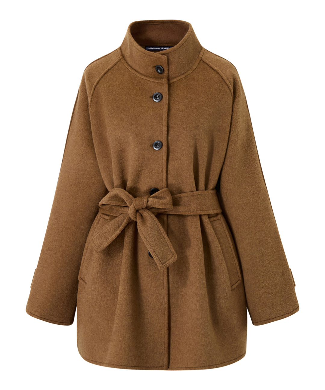 [미니멈 에브리데이]하이넥 울 블렌드 끈 모던 하프 코트 (EB4JH014D)