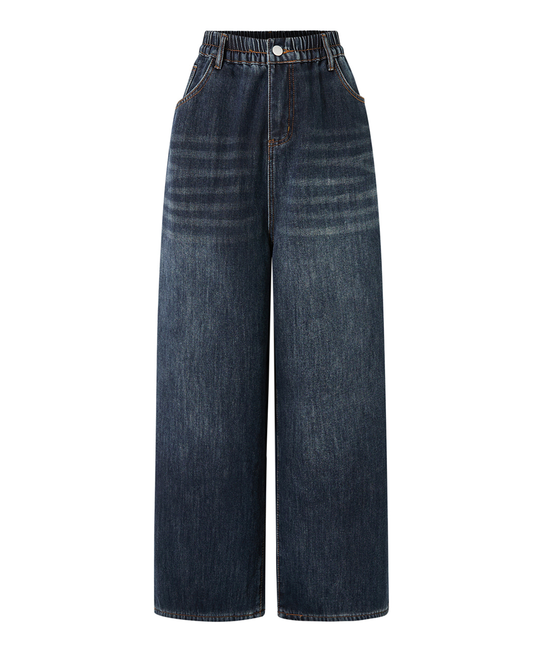 와이드 데님 허리 밴딩 융털 롱 팬츠 (NP4TA011L0)