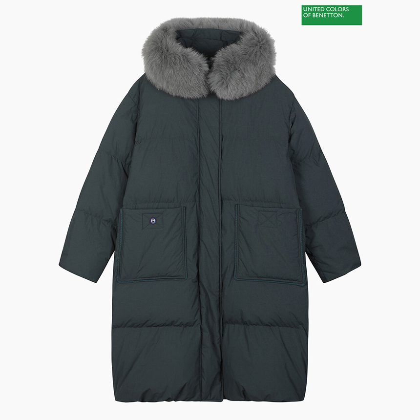 베네통 NEW 폭스퍼후드 구스롱패딩 BAPDA9561
