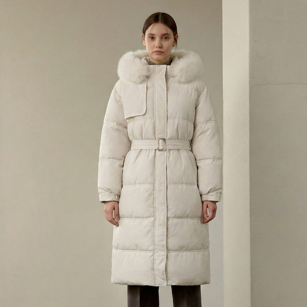 [ab.plus/신상] 벨티드 퍼 후드 롱 패딩 점퍼 (LSA1MU46A)