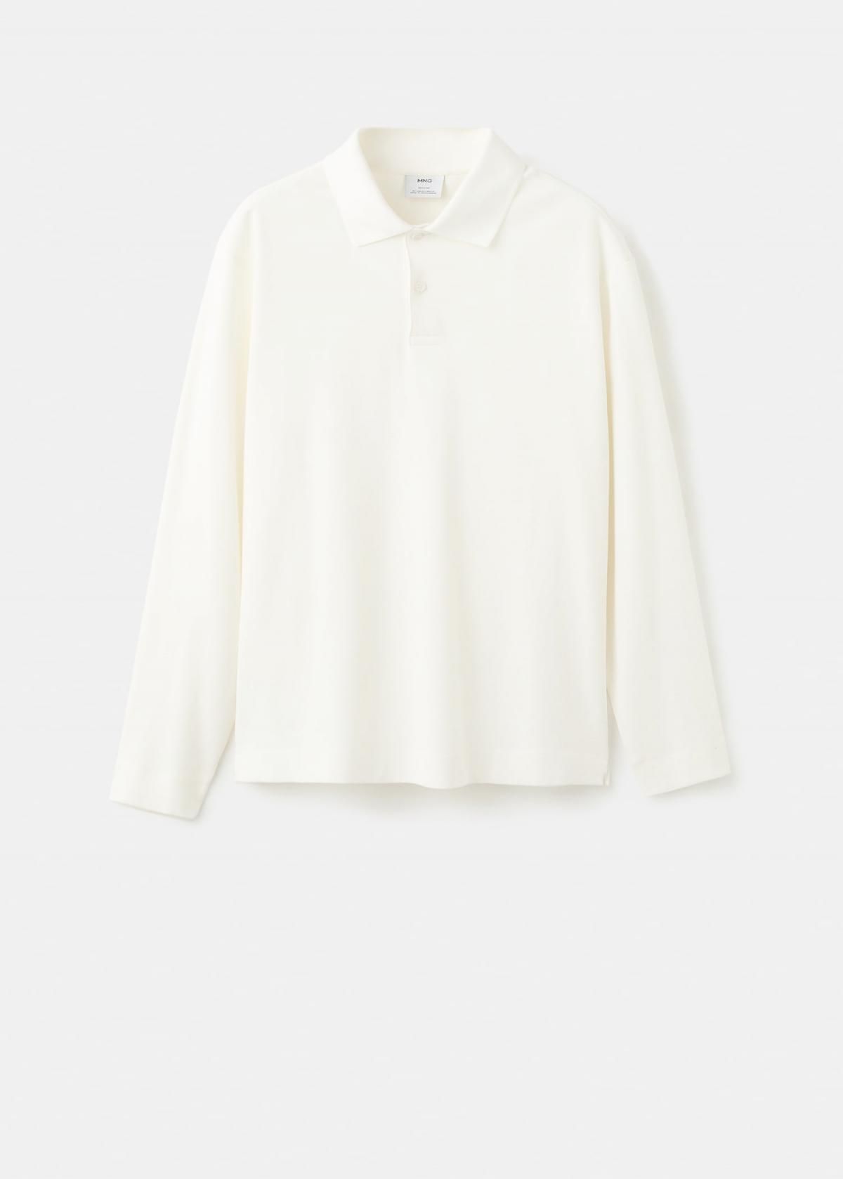망고 미니멀 화이트 테크니컬 긴팔 폴로셔츠 27081256_01 BLANCO