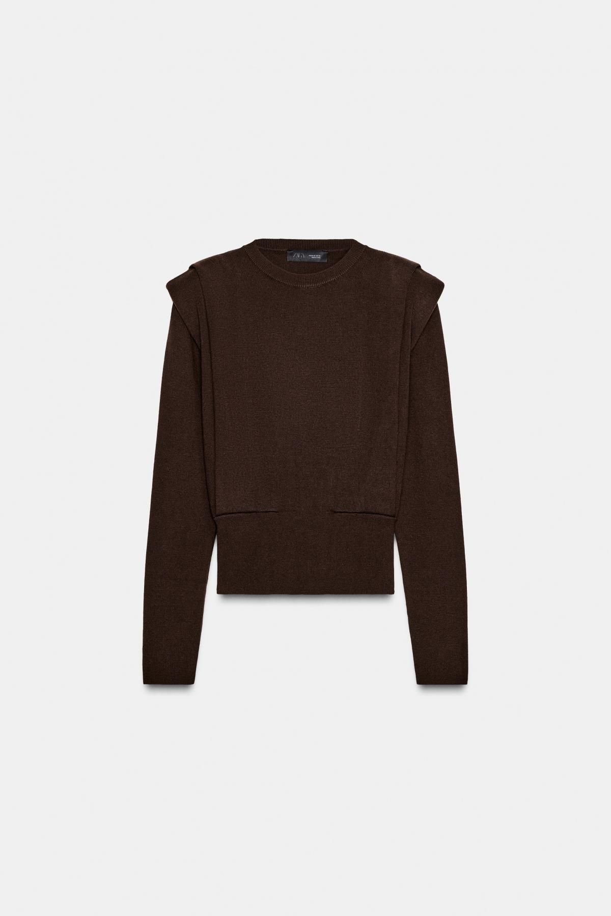 자라 숄더패드 라운드넥 니트 스웨터 3920/969/700 BROWN