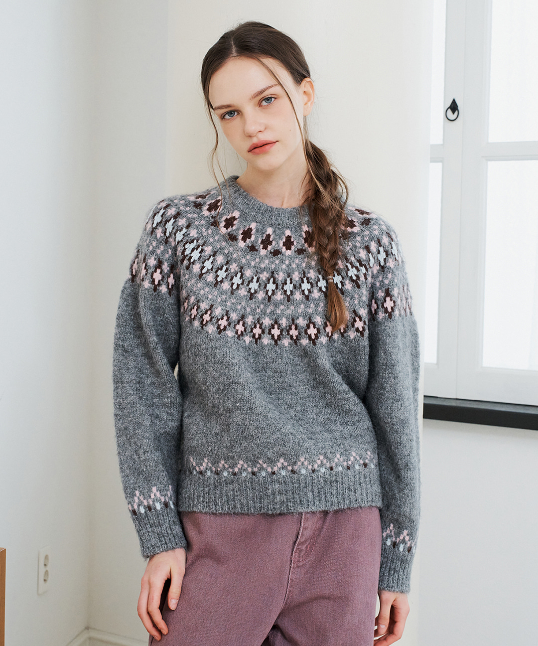 스노우 라운드넥 나그랑 긴팔 니트 (BX4KP040L0)