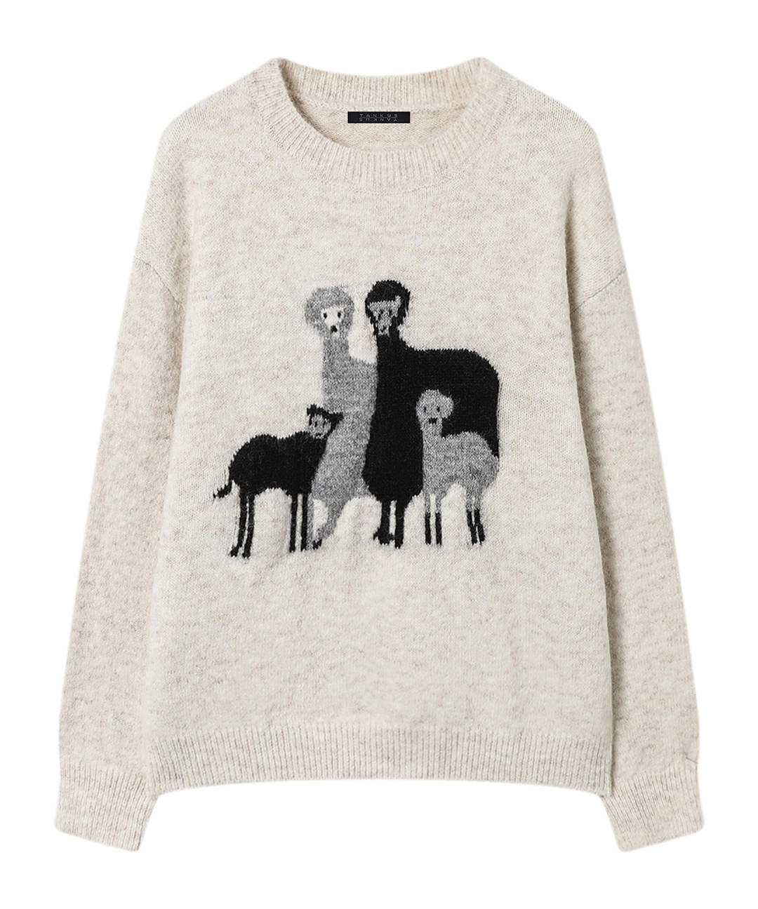 애니멀 자수 라운드넥 긴팔 니트 (TX4KP029L0)