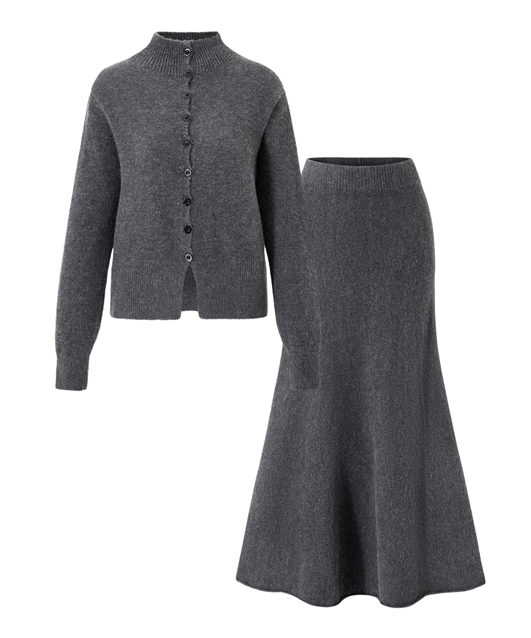 반하이넥 버튼 가디건 니트 롱 스커트 셋업 (GPDOW015D)