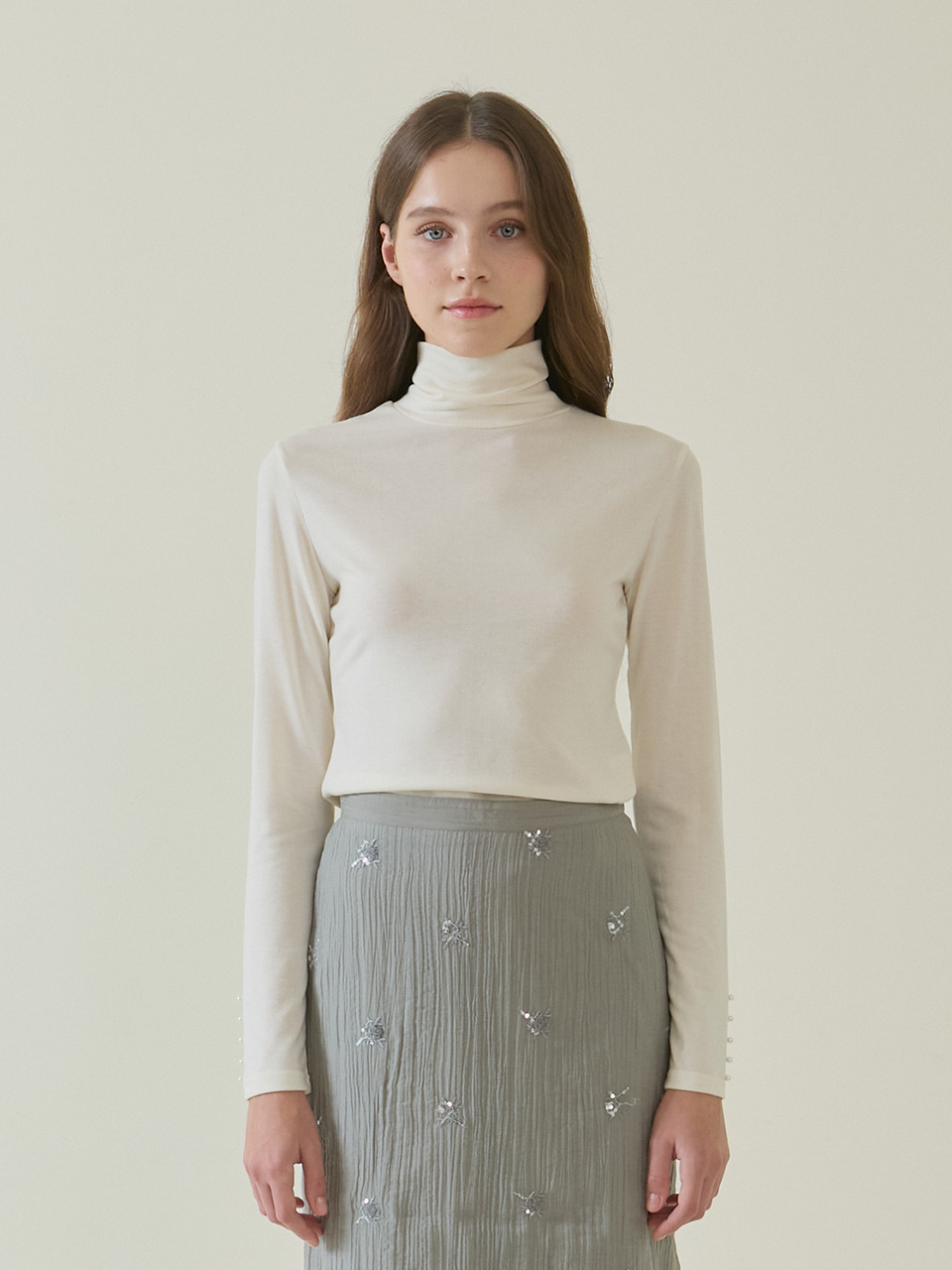 소프트 펄 터틀 넥 니트 탑_아이보리 Soft Pearl Turtle Neck Knit Top _ Ivory