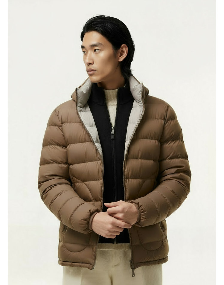 [25FW 헤지스 남성]브라운 경량 리버시블 후드 탈착 구스다운 점퍼_HZJU5D686W2
