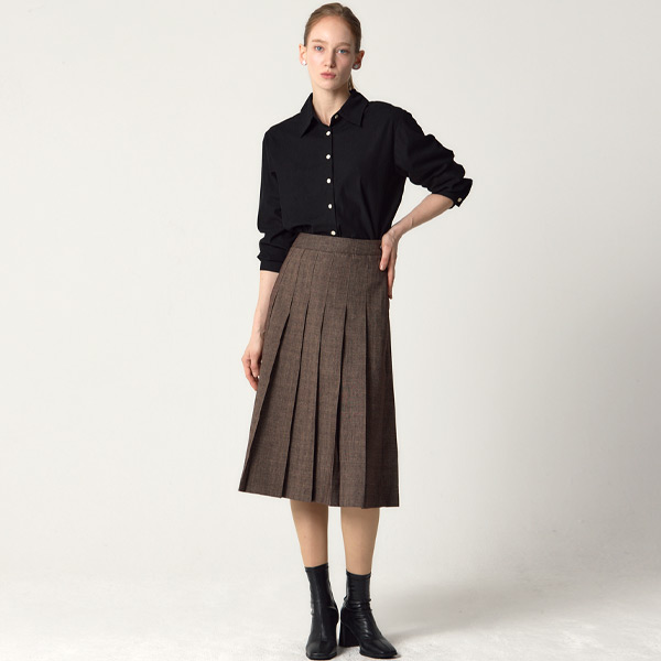 [오조크] 플리츠 울 하프 밴딩 스커트
