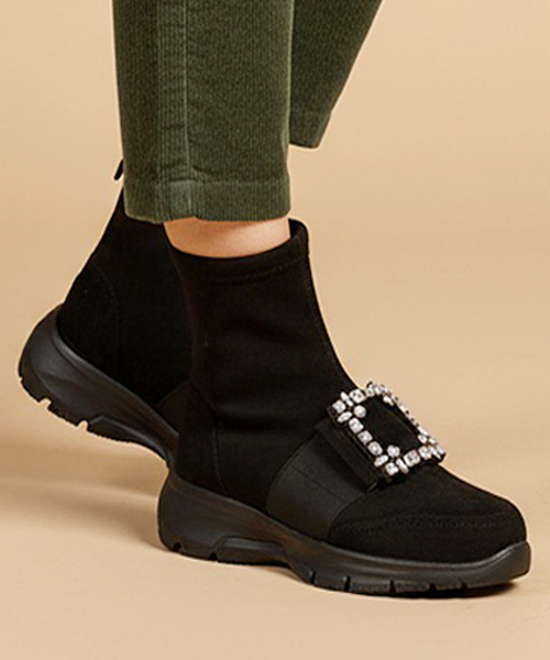 라온느 큐빅장식 뒷지퍼 스판 앵클부츠(1color/5cm)