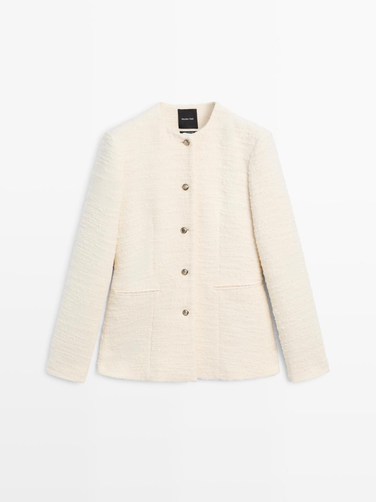 마시모두띠 텍스처 울혼방 트위드 자켓 라인스톤 버튼 6002/650 OFF WHITE