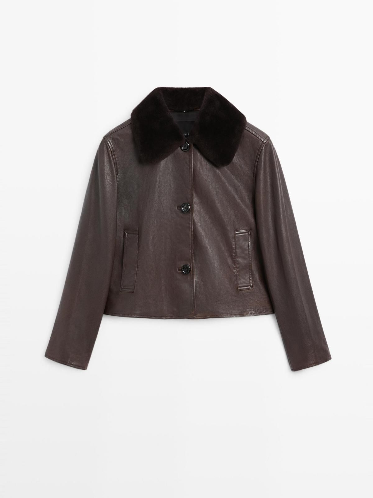 마시모두띠 프리미엄 양가죽 크롭 재킷 퍼카라 4736/586 BROWN