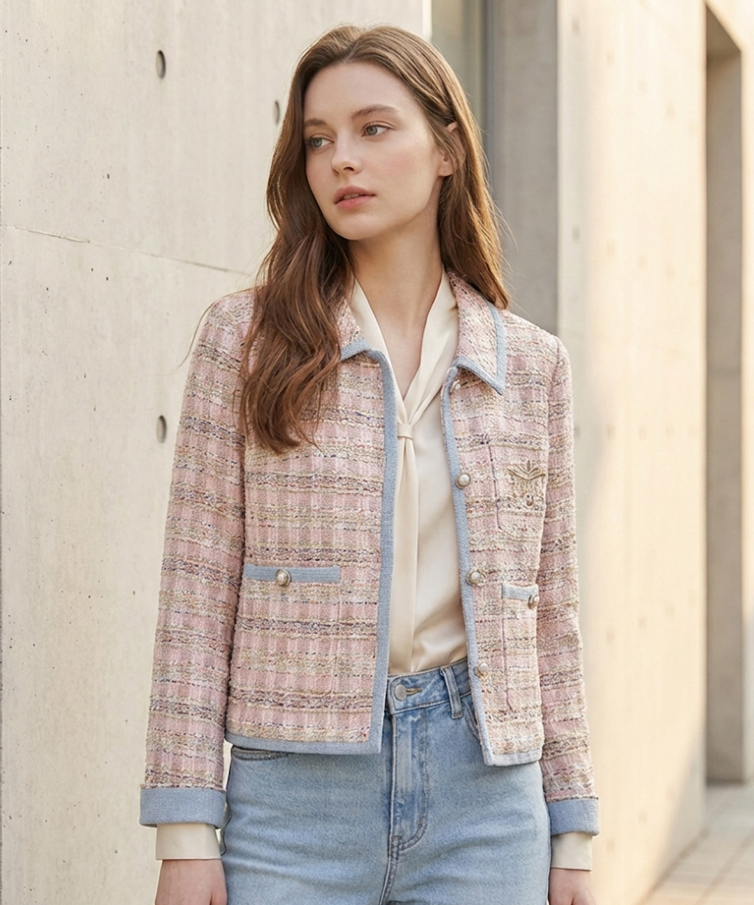 [미센스] 배색라인 트위드 카라 자켓_MB42JKM184Z