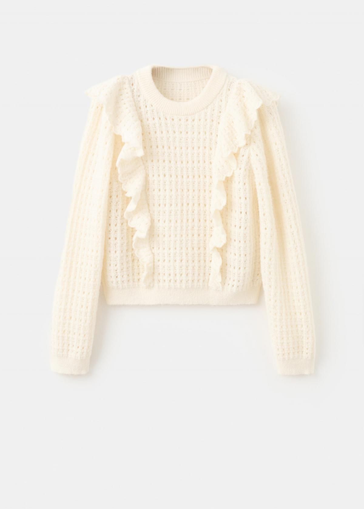 망고 러플 라운드넥 오픈워크 니트 스웨터 27061344_05 CRUDO