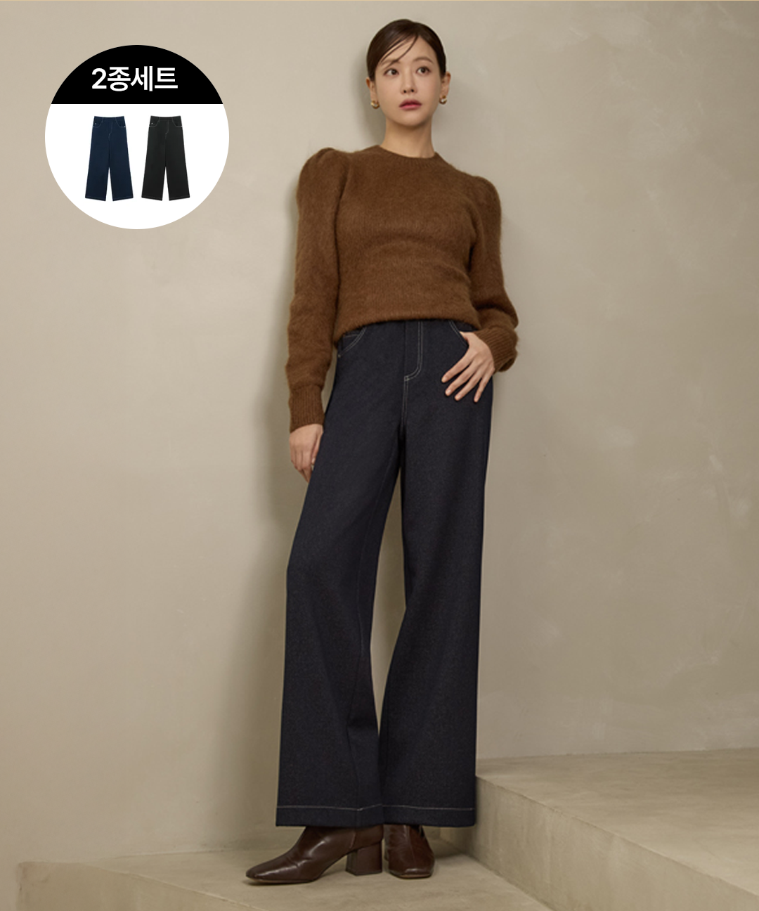 [2종세트] (25FW) 니팅 기모 데님팬츠