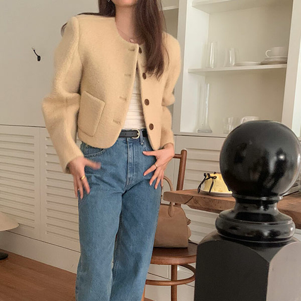 [슈팅스타] 심플 베이직 더블 포켓 싱글 브레스트 모직 재킷