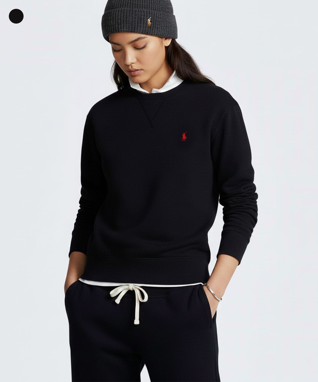 [폴로] 남녀공용기본 라운드 블랙 기모 맨투맨