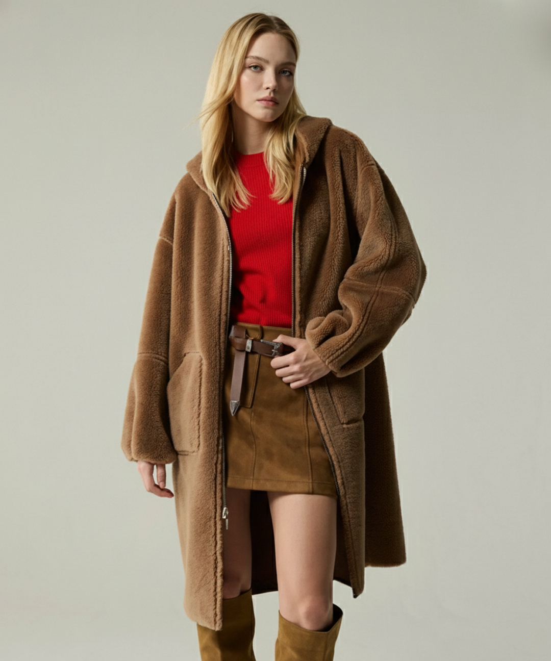 [시즌오프] (25 Pre-Winter) 양모100 Faux스웨이드 리버시블 롱코트