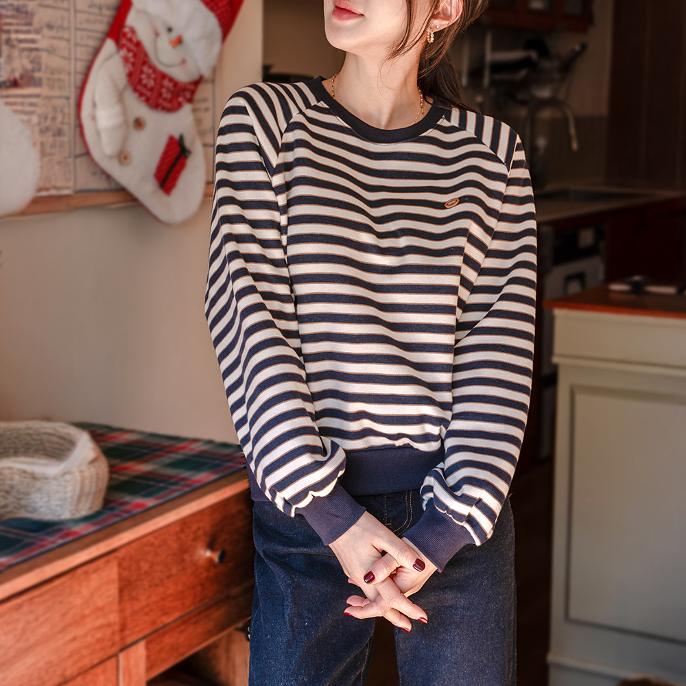 [캔마트] [벨유] 퍼지 기모 스트라이프 맨투맨