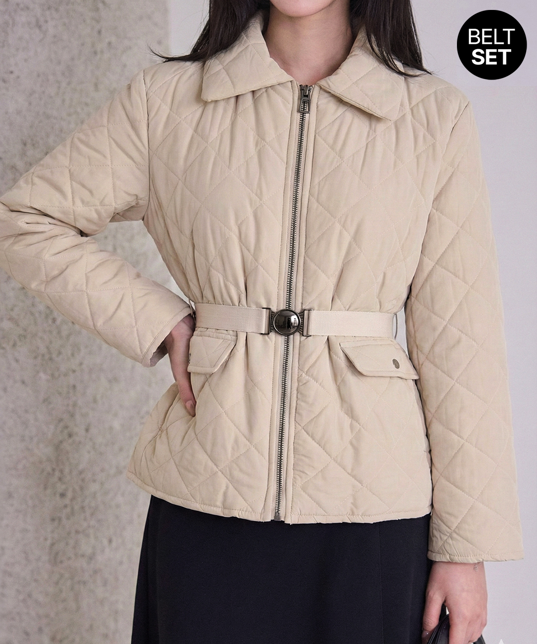 [모리스커밍홈] [벨트SET]퀼팅 카라 하프 패딩_M2512PD012D