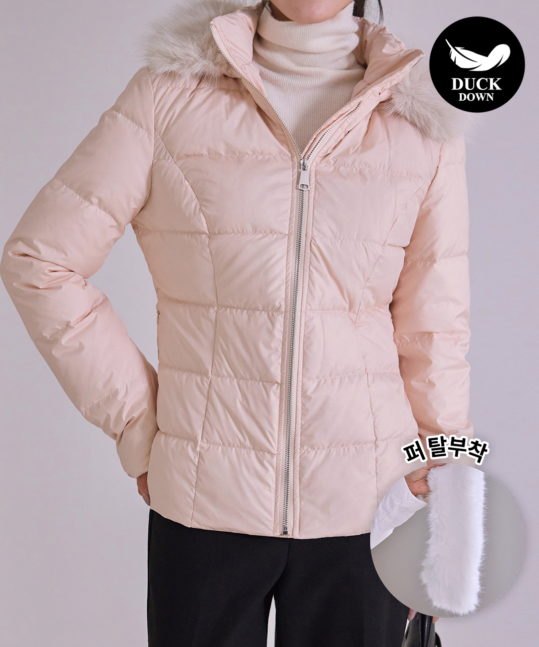 [모리스커밍홈] 탈부착 퍼 슬리밍 덕다운 패딩(수지패딩)_M2512PD014D