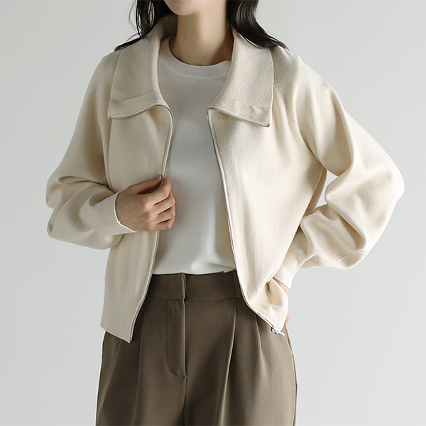촉감이 좋은 니트카라 집업 가디건 v01384