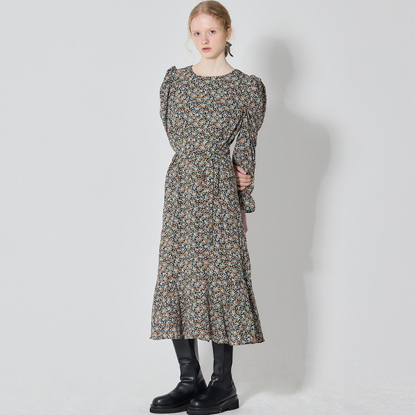 [오조크(OZOC)] 퍼프 소매 플로럴 원피스 (택가격: 87000원)