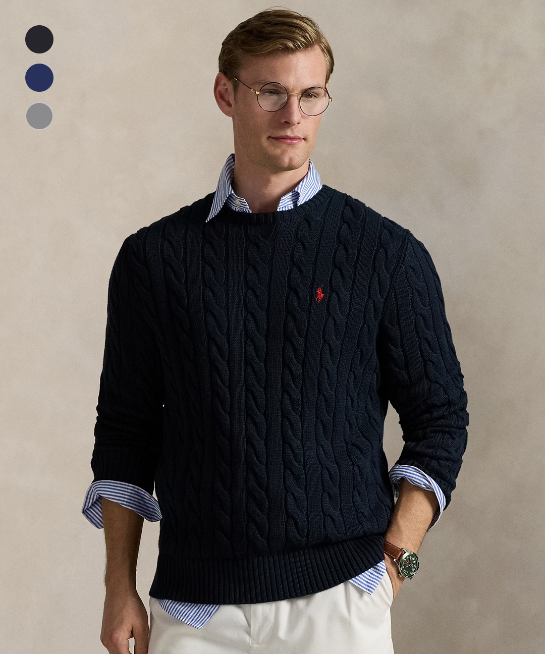 [폴로] 남성 라운드 꽈배기 긴팔 니트 3color