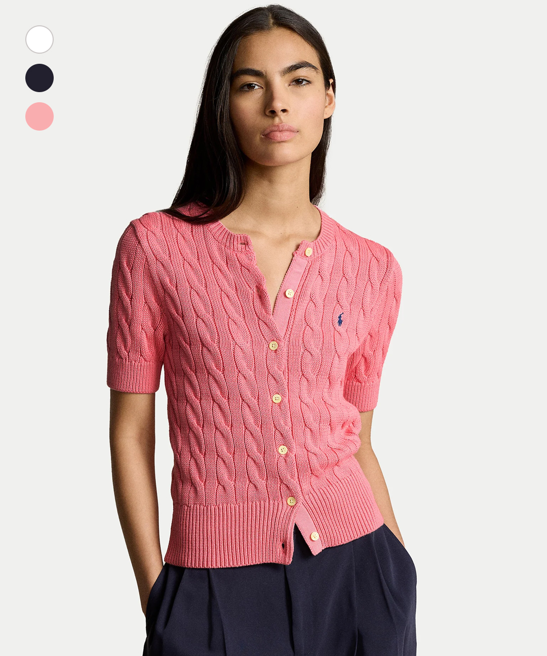 [폴로] 여성 케이블 니트 꽈배기 반팔 가디건 3color