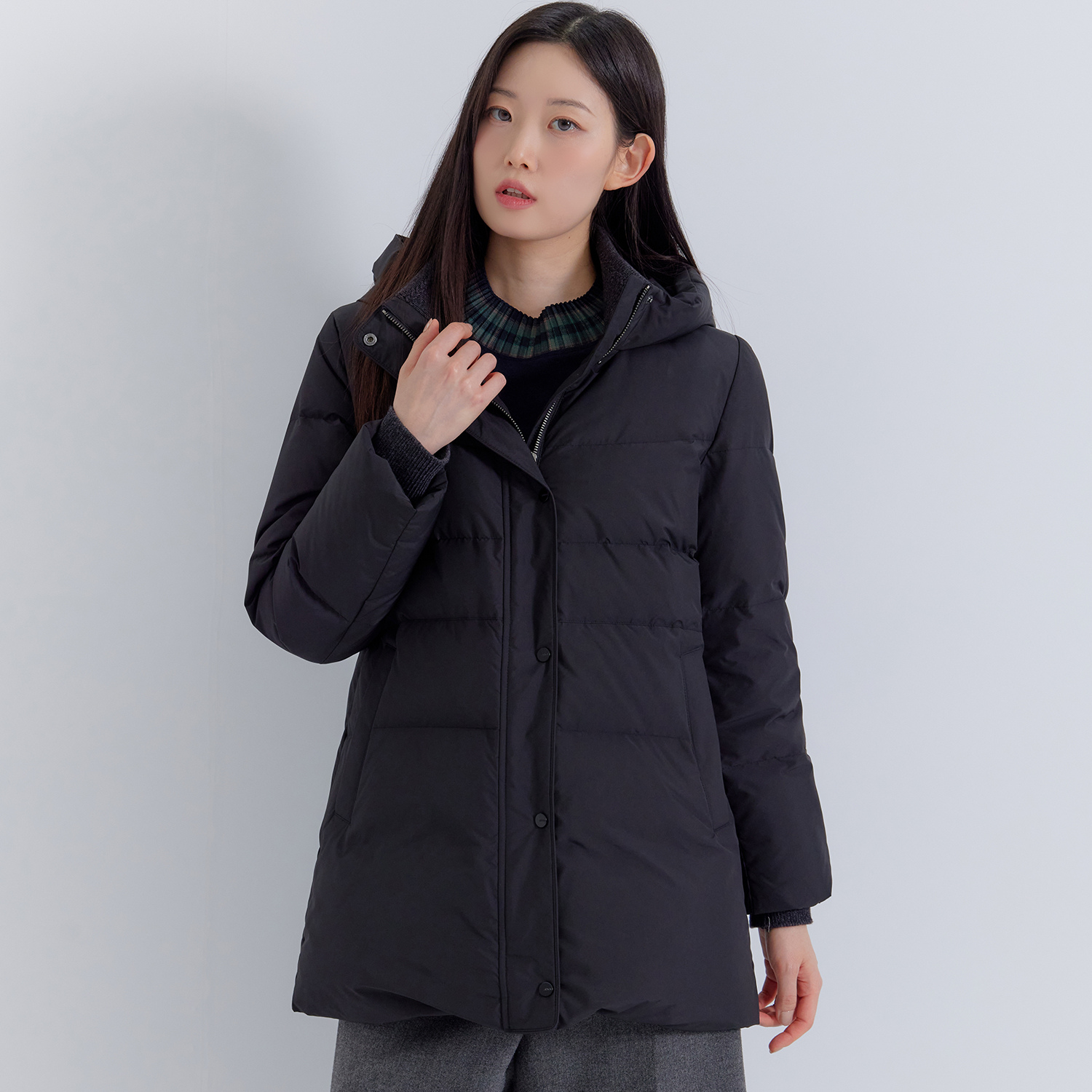 (2컬러) 니트카라 후드 덕다운 중기장 패딩 LCDWPA25