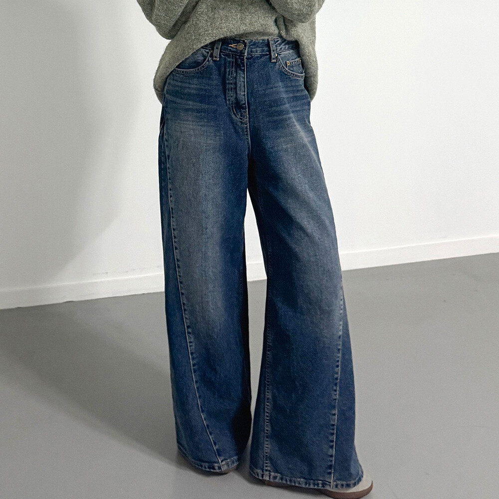 [옷자락] 여자 절개 부츠컷 맥시 와이드 잔기모 사이드 청바지