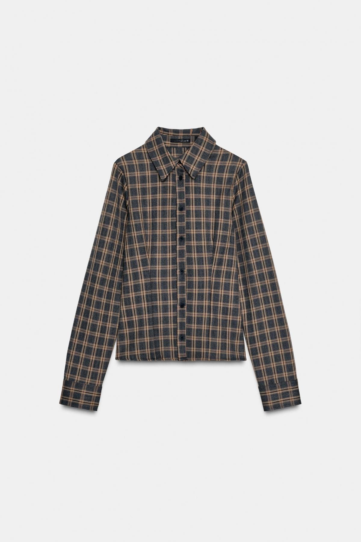 자라 체크 패턴 슬림핏 긴팔 셔츠 3152/198/102 GREY / TAN