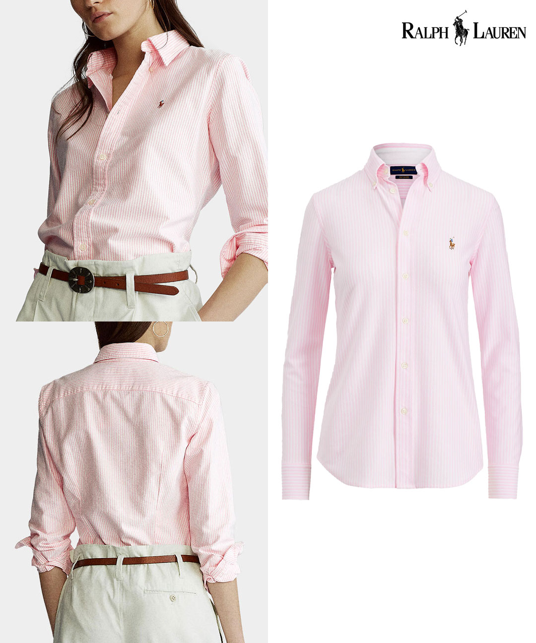 [폴로] 여성 스트라이프 옥스포드 긴팔 셔츠