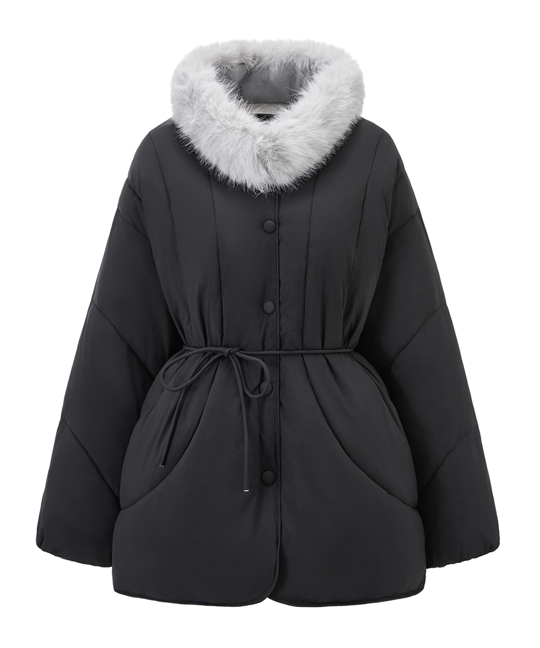 [미니멈 에브리데이]퍼 머플러 세트 허리끈 페미닌 패딩 점퍼 (EB4JJ038D)