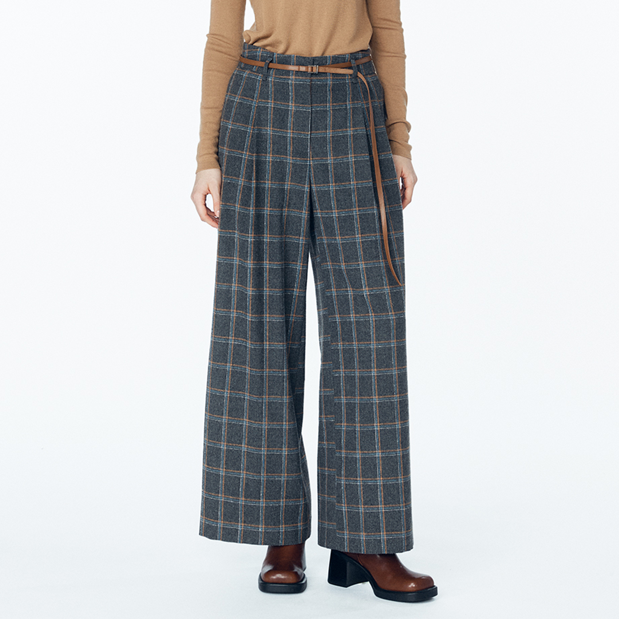 벨티드 투턱 와이드 체크 팬츠_JE9-NSPL0710_GYM