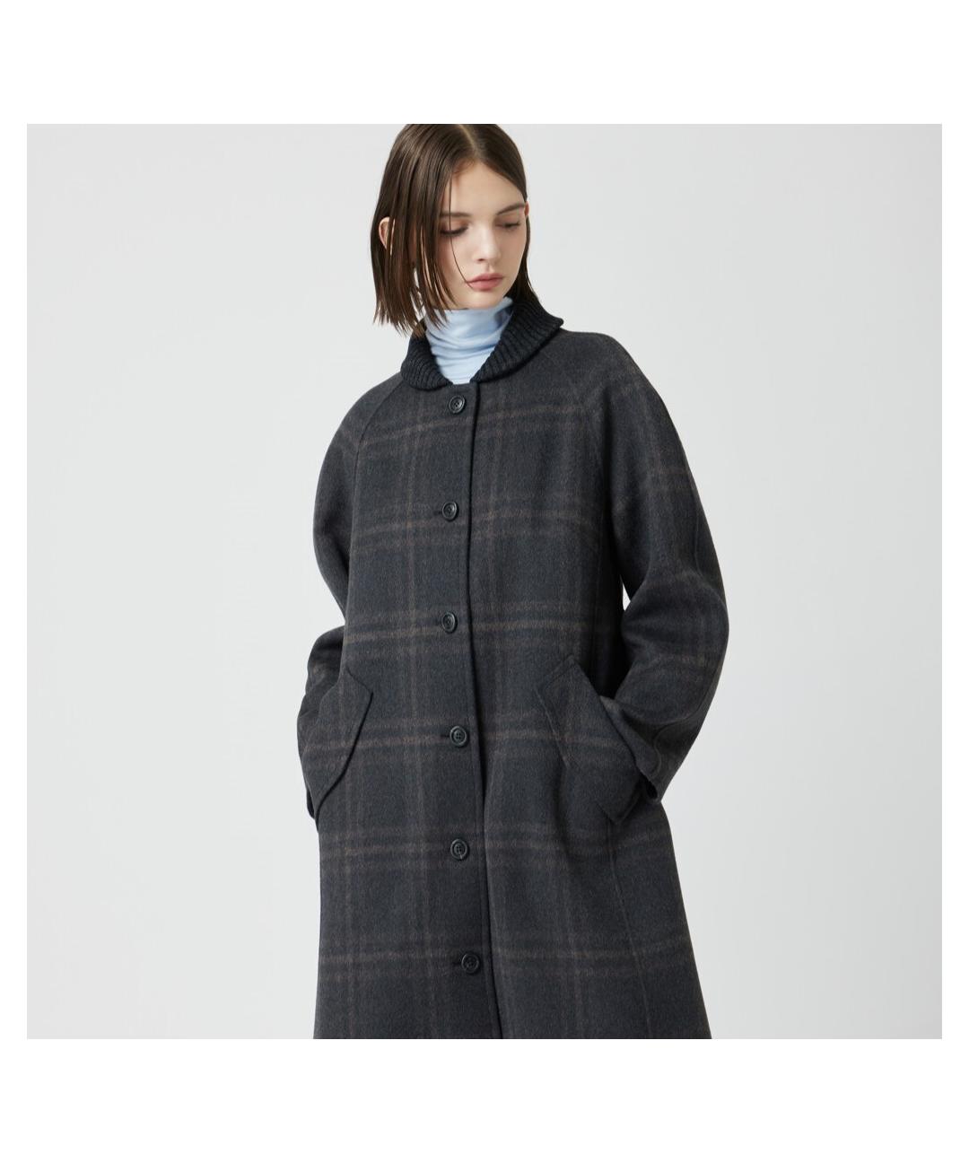 [씨씨콜렉트] 네크 니트 블록 벨티드 체크 롱 코트_C254MSG567