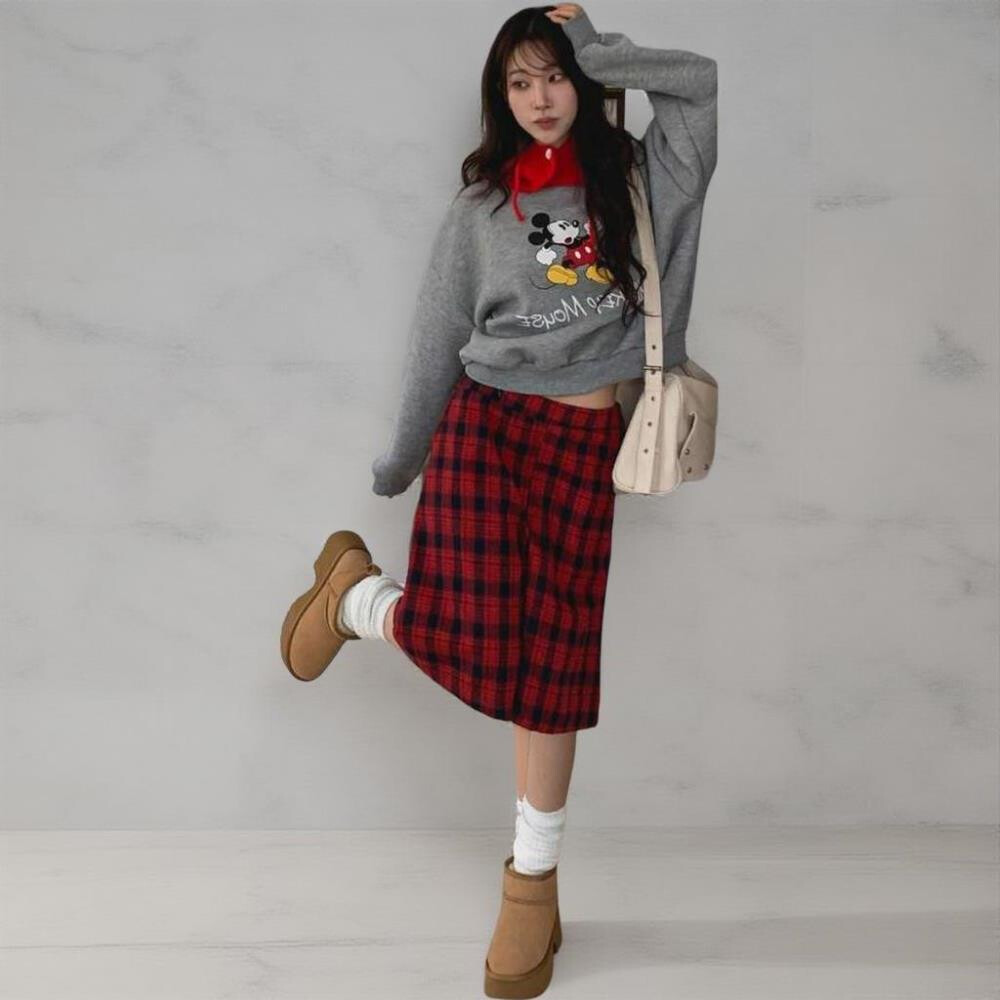 [옷자락] 여성 체크무늬 포인트 기모 뒷밴드 미디 바지
