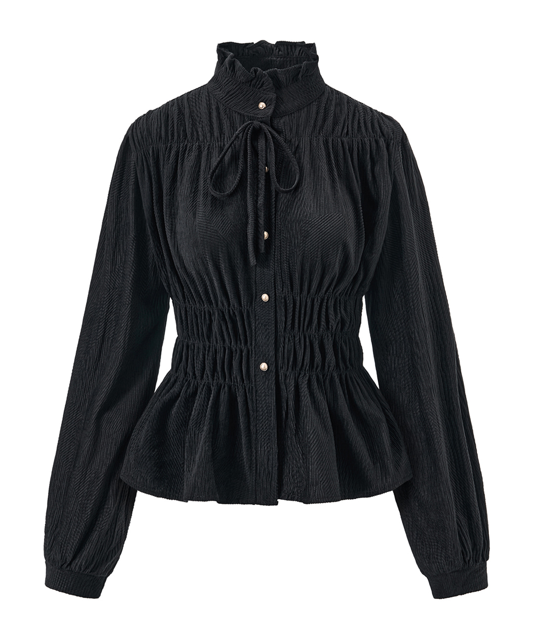 프릴넥 끈 데일리 셔링 블라우스 (GPDBA003D)