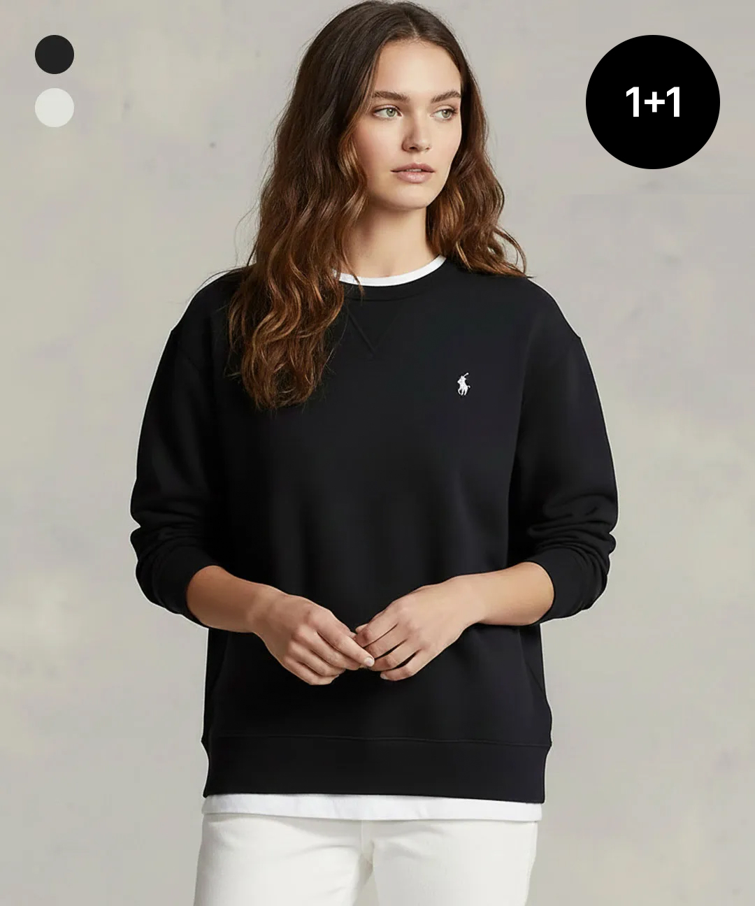 [1+1] [폴로] 남녀공용 베이직 로고 라운드 긴팔 무지 맨투맨 2color