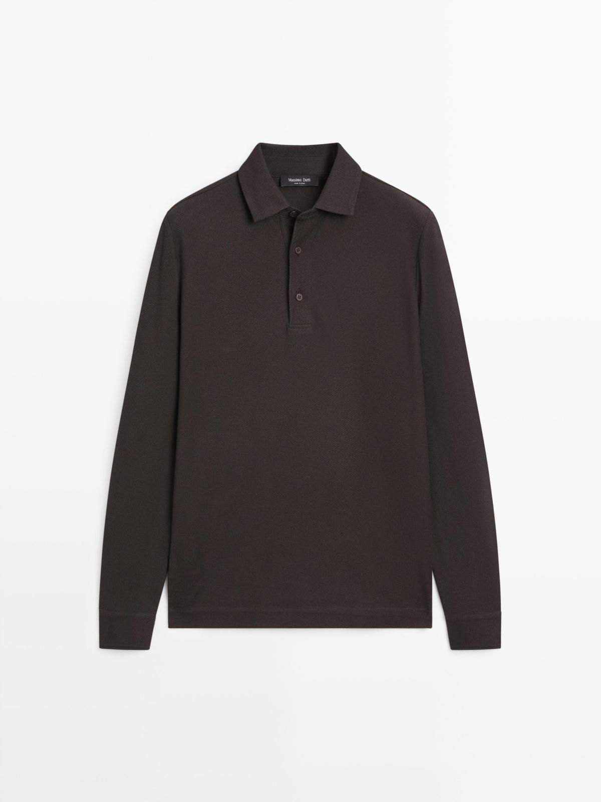 마시모두띠 텍스처 피케 긴팔 폴로셔츠 코튼 브라운 0697/199 CHOCOLATE