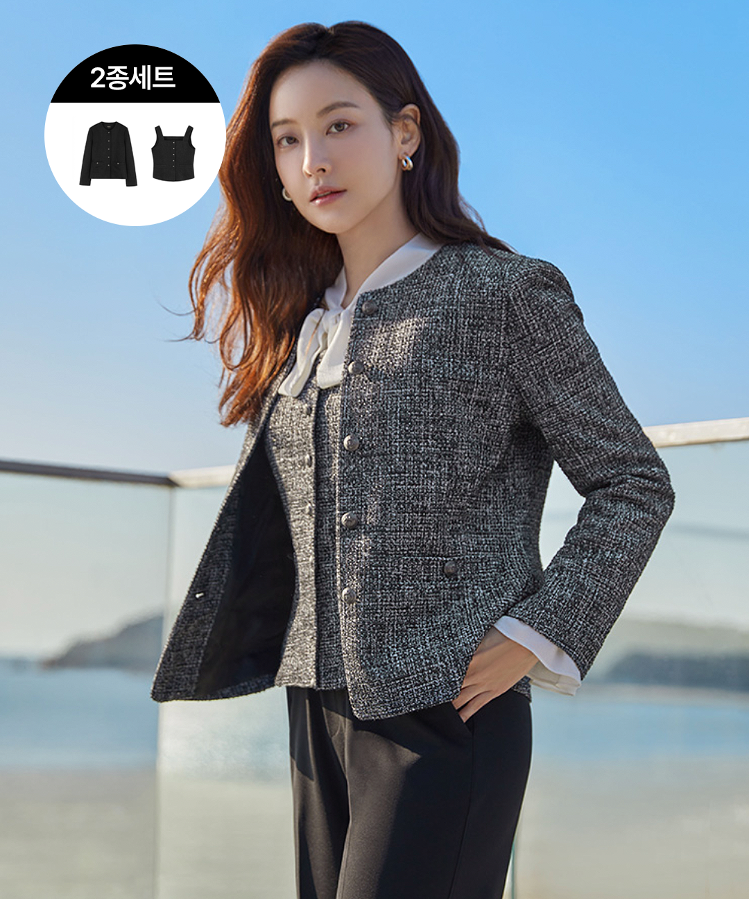 [2종세트] 글리터 트위드 자켓+베스트 2종 SET